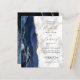 Le bord gauche de cette élégante faire-part de mariage moderne est orné d'une bordure en aquarelle bleu marine ornée d'une parties scintillant en faux or. Le texte personnalisable combine écriture manuscrite de couleur or avec cuivre noir et polices italiques sur un arrière - plan en marbre blanc et gris. L'envers est assorti d'un design d'agate bleu et or.
