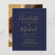 Avec votre photo, les noms de style signature, cet élégant faire-part de mariage bleu marine budget peut être personnalisé avec vos informations en lettres dorées chic. Conçu par Thisisnotme©