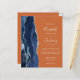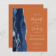 Le bord gauche de cette élégante faire-part de mariage moderne est orné d'une bordure en aquarelle bleu marine ornée d'une parties scintillant en faux argent. Le texte personnalisable combine écriture manuscrite, copperplate et polices italiques en gris argenté clair sur un arrière - plan orange. L'envers offre de l'espace pour les détails mariages sur un arrière - plan orange solide, ainsi qu'un code QR que les clients peuvent scanner pour visiter votre site Web et RSVP, ce qui permet d'économiser le coût d'impression et d'envoi de RSVP séparés