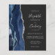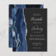 Le bord gauche de cette élégante faire-part de mariage moderne est orné d'une bordure en aquarelle bleu marine ornée d'une parties scintillant en faux argent. Le texte personnalisable combine écriture manuscrite, copperplate et polices italiques en gris argenté clair sur un arrière - plan gris fusain foncé. L'envers est assorti d'un design d'agate bleu marine et argent.