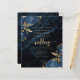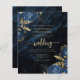 Cette élégante invitation à un mariage présente des bouquets de fleurs bleu marine agrémentés d'une végétation en faux feuille d'or dans deux coins, sur une image arrière - plan d'agate d'aquarelle bleu marine. Le texte personnalisable combine des polices serif, italique et écriture manuscrite de couleur or. L'envers offre de l'espace pour les détails du mariage, ainsi qu'un code QR que les clients peuvent scanner pour visiter votre site Web et RSVP, ce qui permet d'économiser le coût d'impression et d'envoi de cartes RSVP séparées.