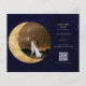 Une faire-part de mariage céleste moderne minimaliste présente un design simple et élégant. Il comprend une lune de feuille d'or et des étoiles qui brillent doucement, dressé contre un arrière - plan bleu nuit. L'invitation utilise la typographie serif classique, qui ajoute une touche traditionnelle et formelle avec son style soigné et clair.