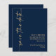 Calligraphie minimaliste QR Code Marine Bleu et Mariage d'or Enregistrer la date. Une alternative de 4,5 x 5,6 po à prix réduit sur 110gsm semi-brillant semblable en épaisseur à une carte postale. Code QR facultatif sur votre site Web mariage à l'arrière qui sera généré automatiquement lorsque vous changez l'exemple d'url sur votre propre URL de site Web ou supprimez un exemple de code si cela n'est pas nécessaire. La calligraphie stylée est pivotée à gauche, avec tous les détails élégamment à droite avec beaucoup d'espace blanc pour une atmosphère contemporaine. Personnalisez facilement avec vos détails. Et changez la couleur du texte et de l'arrière - plan si vous le souhaitez via l'option Modifier plus.