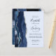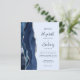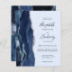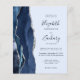 Le bord gauche de cette élégante faire-part de mariage moderne est orné d'une bordure en aquarelle bleu marine ornée d'une parties scintillant en faux argent. Le texte personnalisable combine écriture manuscrite, copperplate et polices italiques en bleu marine sur un arrière - plan bleu pâle. L'envers est assorti d'un design d'agate bleu marine et argent.