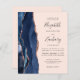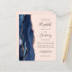Le bord gauche de cette élégante faire-part de mariage moderne est orné d'une bordure en aquarelle bleu marine ornée d'une parties scintillant en or rose. Le texte personnalisable combine un script d'écriture manuscrite gris fusain avec des polices cuivre et italique sur un arrière - plan blush. L'envers offre de l'espace pour les détails mariages sur un arrière - plan solide, ainsi qu'un code QR que les clients peuvent scanner pour visiter votre site Web et RSVP, ce qui permet d'économiser le coût d'impression et d'envoi de cartes RSVP séparées.