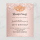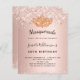 Pour une Masquerade élégante, pour un 50ème anniversaire (ou n'importe quel âge). Un arrière - plan à l'apparence métallique, rose, faux . Décoré avec de la poussière de parties scintillant imitation et un masque masqué doré. Personnalisez et ajoutez un nom, un âge et des détails de la fête. Le nom est écrit avec un script de style manuscrit