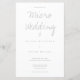 Une faire-part de mariage sur le document budgétaire pour un micro-mariage. Cette invitation en papier léger est faite en blanc et gris avec juste assez d'informations pour gagner la journée. Ajoutez simplement vos informations, ajoutez cet invitation à votre panier et profitez de votre petit mariage intime. (De plus, l'option papier satin est très mince et le papier semi-brillant est suggéré.) (La collection inclut des versions de cette invitation sur des types de papier plus lourds, plus traditionnels) Micro Mariage blanc gris typographie Budget Livre Invitation Jour férié Conception | ©Melissa Patton designer