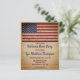 Patriotique Rustique USA American Flag Military Welcome Home Invitations. Des amis Invitations et la famille à vos soldats accueillent la fête à la maison avec cette invitation patriotique militaire drapeau américain. Drapeau américain design usé en détresse.. Cette invitation à la fête de retour militaire est également parfaite pour les invitations à la retraite militaire, la remise des diplômes militaires, les déploiements militaires, les soldats s'éloignant des invitations de la fête, changer de lieu en personnalisation. Personnalisez cette invitation de drapeau américain avec vos détails sur l'événement, le nom et la fête des soldats. Ces cartes postales d'invitation militaire budgétaires doivent être postées en tant que cartes postales surdimensionnées, de sorte qu'elles peuvent entraîner des frais d'affranchissement standard, mais elles n'ont pas besoin d'une enveloppe ou d'une étiquette d'adresse de retour. Consultez notre collection pour obtenir des cadeaux de bienvenue militaires, des faveurs pour les fêtes et des fournitures. DROIT D'AUTEUR © 2021 Judy Burrows, Black Dog Art - Tous droits réservés. Budget Militaire Bienvenue Accueil Invitation du parti Carte postale
