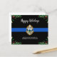 Envoyez Joyeux voeux de Noël à vos amis, aux entreprises' , aux autres services d'application de la loi et à votre communauté avec cette carte de Noël unique du service de police de Ligne Bleue Bleue - Noir et bleu moderne avec des feuilles saints et des baies. Personnalisez avec le logo, le message et le service de police. Ces cartes postales budgétaires de noël doivent être postées comme des cartes postales surdimensionnées, de sorte qu'elles peuvent encourir des frais d'affranchissement standard, mais elles n'ont pas besoin d'une enveloppe ou d'une étiquette d'adresse de retour. DROIT D'AUTEUR © 2020 Judy Burrows, Black Dog Art - Tous droits réservés. Budget Mince Ligne Bleue Police Département Noël Fête Carte postale