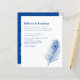 La feuille de papier de Faire-part de mariage économique minimaliste présente une illustration élégante d'une ligne de plumes paon avec un thème de couleur bleu royal. Design typographique moderne et propre, cette invitation de mariage est prête pour vous à customiser avec les détails de votre journée spéciale. Fait partie d'une gamme toujours croissante de papeterie.