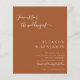 Annoncez votre grande journée avec cette invitation de mariage élégante et économique, avec un script chic minimaliste sur un arrière - plan en terre cuite avec un texte blanc immaculé. Conçu pour les couples modernes, il comprend une disposition propre et élégante avec espace pour partager votre site RSVP, ce qui le rend à la fois pratique et beau. Parfait pour créer une tonalité chaleureuse et accueillante, cette option abordable assure à votre papeterie mariage est stupéfiant sans casser la banque!