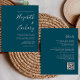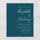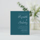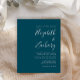 Économisez le coût d'impression et d'envoi de cartes RSVP séparées avec ce faire-part de mariage tout-en-un simple et moderne, avec du texte blanc sur un arrière - plan bleu turquoise. Ajoutez les noms de la mariée et du marié en calligraphie stylisée et les détails en police sans serif. L'envers offre de l'espace pour les détails mariages, ainsi qu'un code QR que les clients peuvent scanner pour visiter votre site Web et RSVP, sur un arrière - plan bleu turquoise.