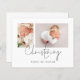VEUILLEZ NOTER : Il y a deux options papier pour cette taille (4,5 x 5,6 po) dans la plage Budget. Pour ce produit, je recommanderais le semi-brillant qui est un stock de carte de 110 gsm, semblable en épaisseur à une carte postale. L'option Satin est un papier beaucoup plus fin 80gsm. La valeur par défaut est semi-brillante. VEUILLEZ NOTER qu'il y a UN par feuille. Budget Modern Script 2 Photos Christening. Style minimaliste. Il suffit de remplacer les deux exemples de photos par les vôtres et de personnaliser avec le nom de votre bébé et en bas et tous les détails sur le dos. Christening est dans un script stylé.