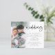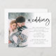 Budget Modern Script Photo QR Code Faire-part de mariage. Un prix économique PETIT 4,5 po x 5,6 po alternatif. Disponible dans un STOCK SEMI-GLOSS 110 lb CARD qui est l'option par défaut (plus épais pour les invitations), OU un STOCK SATIN FINISH 80 lb THINNER PAPER (idéal pour les boîtiers). Ajoutez votre code QR à votre site Web mariage au verso, ce qui en fait une option pratique pour vos invités à RSVP et voir tous les détails sans avoir besoin de RSVP séparé et de cartes de détails. Votre code QR sera généré automatiquement pour mettre à jour l'exemple de code dans la conception, lorsque vous changez simplement l'exemple d'URL dans le modèle avec votre propre URL de site mariage. Un design ludique minimaliste pour faire connaître à tout le monde vos bonnes nouvelles. Remplacez simplement l'exemple de photo par votre préféré. Un calque de superposition de dégradé se trouve au-dessus de votre photo, de sorte qu'il s'évanouit lorsqu'il atteint le centre avec le texte partiellement recouvert sur le dessus. Le mariage est dans un script moderne et personnalise facilement le reste du texte.