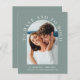 Faire-part de mariage moderne vert sauge et économique avec votre photo dans un cadre voûté entouré par "To Have And To Hold" dans une élégante typographie blanche et vos prénoms, date mariage et emplacement. Au contraire, personnalisez votre invitation dans une simple typographie blanche.