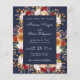 Budget moderne automne fleurie marine bleu invitation mariage. Nom, date et information de la Personnaliser.