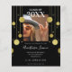 Obtenez qualité ET abordabilité grâce à cette invitation à graduation moderne. Le design comporte une bordure partielle d'ornements dorés rétro contre un arrière - plan noir propre. Tous les détails peuvent être personnalisés et ajouter dans votre propre photo du diplômé spécial dans votre vie.