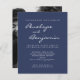 Cette faire-part de mariage chic et moderne est composée d'un arrière - plan marin profond avec son écriture élégante et son texte minimaliste sans serif, créant un contraste sophistiqué qui met en évidence les noms du couple. L'arrière comprend de l'espace pour une photo complète, ajoutant une touche personnelle et romantique. Parfait pour les mariages contemporains à l'esthétique raffinée, ce design convient aux couples à la recherche d'un accueil chaleureux et propre à la clientèle invitation. *option papier budget