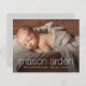 A full-bleed photo birbirth announcement with large moveable name element in a sleek modern with birth details below. The back of the card allows for 2 additional newborn photo and parents message or additional birth information. All of the élément on this card are customizable so it's easy to create a one of a kind design by swapping out the fonts and colors of text and background color to meet your specific needs. The back of the card is in ideal place to add siblings photos as well to include them on the exciting announcement of their new brother or sister. This would make a lovely adoption or pregnancy announcement as well.