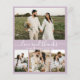 Budget, Moderne, Élégant, Minimaliste Mariage Lettré À La Main Quatre (4) Photo Collage Carte de remerciements à Lilac. Élégant modèle mariage avec 4 photos sur le devant et une photo sur le dos. Avec le texte "Amour et merci" dans une tourbillonnant écriture typographique script swash-tail police en couleur blanche sur couleur pastel clair lilas ou couleur violet clair arrière - plan. Personnalisez le nom personnalisé et le message de remerciement. Petit coeur entre les noms. Si vous préférez écrire votre note à la main, supprimez simplement l'exemple de texte. Si vous avez besoin d'aide ou de l'article correspondant, s'il vous plaît contactez-moi!