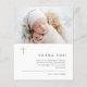 Budget Modern minimal Photo Baptême Carte de remerciements avec simple typographie et photo. Cliquez sur le bouton Modifier pour customiser cette conception avec vos détails.