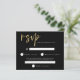 Mariage moderne Noir et Or RSVP. Un prix économique PETIT 4,5 po x 5,6 po alternatif. Disponible dans un STOCK CARTE SEMI GLOSS 110 lb qui est l'option par défaut (recommandé pour les invitations), OU un STOCK PAPIER THINNER SATIN FINISH 80 lb (idéal pour les boîtiers). Les enveloppes sont en option et légèrement plus grandes que la taille de la carte. Définissez la typographie pour le titre principal RSVP en complément du reste du texte que vous pouvez facilement personnaliser.