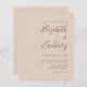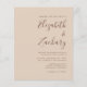 Cette faire-part de mariage moderne simple présente un texte marron sur un arrière - plan neutre de couleur terre beige. Ajoutez les noms de la mariée et du marié en calligraphie stylisée et les détails en police sans serif. L'envers est assorti, dans un camaïeu de beige solide.