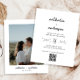 Faites monter vos invitations de mariage avec notre design moderne Simple Script Photo QR Code! Cette invitation chic et contemporaine allie élégance et commodité, ce qui en fait le choix idéal pour les couples férus de technologie. Faites de votre mariage une planification plus fluide et plus stylisée grâce à notre Faire-part de mariage de code QR photo Modern Simple Script - où l'élégance et l'innovation se marient !