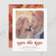 Budget Modern Earth Tones Terracotta Photo Save the Date Carte photo dans une police moderne et branchée qui évoque une sensation boho de luxe. Sur le dos est un design motif abstrait en terre cuite à la mode avec des touches modernes de brosse orange, marron, safran, argile et rose roux. Ajoutez facilement vos noms et dates pour un design vraiment personnalisé. **Notre papier BUDGET est plus petit, plus léger et plus délicat, mais toujours beau! N'oubliez pas les enveloppes!** Si vous avez besoin d'aide ou de pièces de correspondance, contactez-nous à l'adresse cedarandstring@gmail.com.