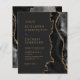Le bord droit de cette élégante faire-part de mariage moderne est orné d'une bordure d'aquarelle noire moody ornée d'une parties scintillant en faux or. Le texte personnalisable combine des polices serif, cuivre et italique de couleur or sur un arrière - plan noir en ardoise. L'envers est assorti d'un design d'agate noir et or.