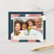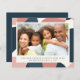 Carte de vacances moderne et élégante, économique, avec votre photo encadrée d'un arrière - plan motif abstrait moderne rose, corail, crème et bleu foncé. Vous pouvez personnaliser le salut "Holiday Cheers & Happy New Year", vos noms et l'année en simple typographie bleu foncé.