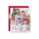 Pour un budget de trois voeux de Noël photo avec "Paix et Joie" dans un élégant script superposant votre photo sur le devant. Au verso, ajoutez deux autres photos et un accueil personnalisé.