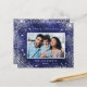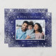 Un arrière - plan bleu profond décoré de poussière de parties scintillant fausse argentée, étoiles brillantes. La couleur bleue est inégale. Personnalisez et ajoutez votre propre photo, nom et une année. Avec le texte : Joyeux Noël.