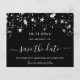 Une carte de sauvegarde de date girly et tendance pour une fête d'anniversaire de 40 ans (ou tout âge). Un fond noir élégant orné de fausses étoiles argentées. Personnalisez et ajoutez une date et un nom/âge 40. Le texte : Sauvegarder la date est écrit avec un grand style de lettrage manuscrit tendance.
