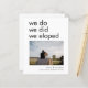 Un prix économique PETIT 4,5 po x 5,6 po alternatif. Disponible dans un STOCK SEMI-GLOSS 110 lb CARD qui est l'option par défaut (plus épais pour les invitations), OU un STOCK SATIN FINISH 80 lb THINNER PAPER (idéal pour les boîtiers). Les enveloppes sont en option et légèrement plus grandes que la taille de la carte. Vous pouvez modifier les couleurs du texte et de l'arrière - plan en n'importe quelle couleur de votre choix. Style contemporain pour faire connaître à vos amis votre évènement avec une typographie moderne simpliste, We Do We Do We Do We Do We Eloped sur le devant en noir, sous lequel ajouter votre photo préférée de votre mariage d'évènement, et personnaliser vos noms, ainsi que la date et l'emplacement de votre cérémonie. Sur le dos, personnalisez facilement avec votre faire-part. Les couleurs du texte et de l'arrière - plan peuvent être modifiées si vous le souhaitez via l'option Personnaliser supplémentaire.