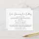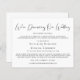 Option de faire-part du mariage budgétaire si les circonstances exigent que vous réduisiez votre mariage. Ce faire-part mariage moderne et simple, mais élégant, noir et blanc de petite taille propose des fonctionnalités "We're Downsizing Our Mariage" écrites dans une jolie calligraphie élégante et vous pouvez facilement personnaliser le message de réduction mariage et ajouter des événements de mariage virtuel, des célébrations futures et des informations sur le site mariage. Également disponible sur d'autres produits papier, comme un faire-part de carte plat 5X7 ou une carte postale.