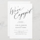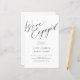 Simple minimaliste chic calligraphie blanche et noir nous sommes engagés script budget abordable invitation de partie engagement.