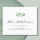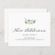 Faites savoir à votre famille et à vos amis que vous avez déménagé avec ces annonces budgétaires modernes et élégantes. Elles sont dotées d'une simple aquarelle de verdure et d'une typographie de script qui dit "Nouvelle adresse". Utilisez l'outil de conception pour modifier la taille, le style ou la couleur du texte. Aquarelle originale © Michele Davies.