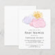 L'invitation de baby shower budget de cette mignonne fille est décorée avec des nuages d'aquarelle et le soleil. Facile à personnaliser. En créant notre oeuvre, vous ne trouverez pas cette image exacte d'autres créateurs. Aquarelle originale © Michele Davies.