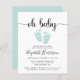 Jolie invitation baby shower neutre et économique avec "oh bébé" dans un script élégant avec des swashes et une aquarelle verte à la menthe pastel de pieds bébé. Personnalisez facilement les détails de la douche.