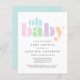 Cette invitation de baby shower sans rapport avec le sexe, qui respecte le budget, présente "oh bébé" dans un arc-en-ciel de typographie moderne et audacieuse pastel turquoise, bleu, vert, rose, violet et orange. Vous pouvez facilement personnaliser avec les détails de la douche et customiser "Baby shower" à "Baby Boy Shower" ou "Baby Girl Shower" si désiré.