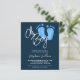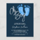 Prévoyez-vous le baby shower d'un garçon ? Ces invitations à la douche bébé budget moderne sont décorées avec Oh Boy! dans la typographie stylisée et les pieds de bébé d'aquarelle mignonne en bleu pastel sur un arrière - plan bleu marine. Facile à personnaliser. Aquarelle originale © Michele Davies.