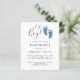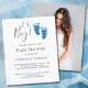 Cet élégant Baby shower à budget Invitation est décoré avec les pieds de bébé mignons en parties scintillant bleue et les mots, Oh garçon! Au dos se trouve une photo qui peut être remplacée par l'une des vôtres. Facile à personnaliser. Utilisez l'outil de conception pour modifier la taille, le style ou la couleur du texte.