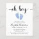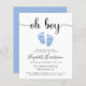 Joli petit petit garçon petit budget sprinkle invitation avec "oh garçon" dans un script élégant avec des swashes et une aquarelle bleu pastel de pieds bébé. En dessous, vous pouvez facilement personnaliser les détails de l'aspersion de bébé.