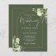 Cet élégant faire-part de mariage feuille de verdure verte olive budget élégant peut être personnalisé avec vos informations dans une typographie moderne et élégante avec vos initiales monogrammes au verso. Conçu par Thisisnotme©