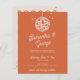 Budget Retro Super les années 70 Cute Ivory Orange Disco Faire-part de mariage avec photo Retour