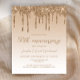 Cette invitation de fête d'anniversaire de mariage de 50 ans tendance présente une bordure de faux paillettes dorées scintillantes et un fond ombré. Les mots "50e Anniversaire" et les noms du couple apparaissent dans une écriture fantaisiste de couleur or, le reste du texte personnalisable étant en police sans serif de couleur or. Le même design de goutte de paillettes dorées apparaît au verso.