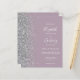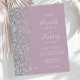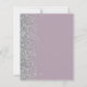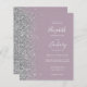 Le bord gauche de cette élégante faire-part de mariage moderne est orné d'une bordure en faux parties scintillant argenté. Le texte personnalisable combine écriture blanche, copperplate et polices italiques sur un arrière - plan mauve pâle. L'envers présente un design mauve et argent assorti.