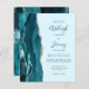Le bord gauche de cette élégante faire-part de mariage moderne est doté d'une bordure turquoise en aquarelle bleue ornée d'une parties scintillant en faux argent. Le texte personnalisable combine écriture manuscrite, copperplate et polices italiques en turquoise foncé sur un arrière - plan turquoise pâle. L'envers présente un design turquoise et argenté assorti.