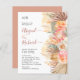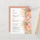 BUDGET Fleurs séchées tropicales à l'aquarelle, feuilles de palmiers et mariage de automne de pampas. Il présente un agencement de feuilles de palmiers séchés, de fleurs de protéa et de fleurs roses et d'herbe de pampas sur le côté droit. Le dos comprend un arrière - plan en terre cuite souple.